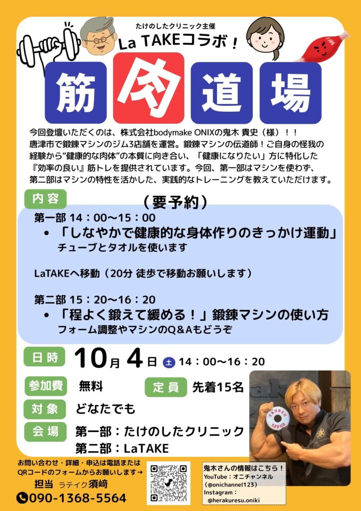 💪10/4(土)「筋肉道場」× LaTAKEコラボ 開催!